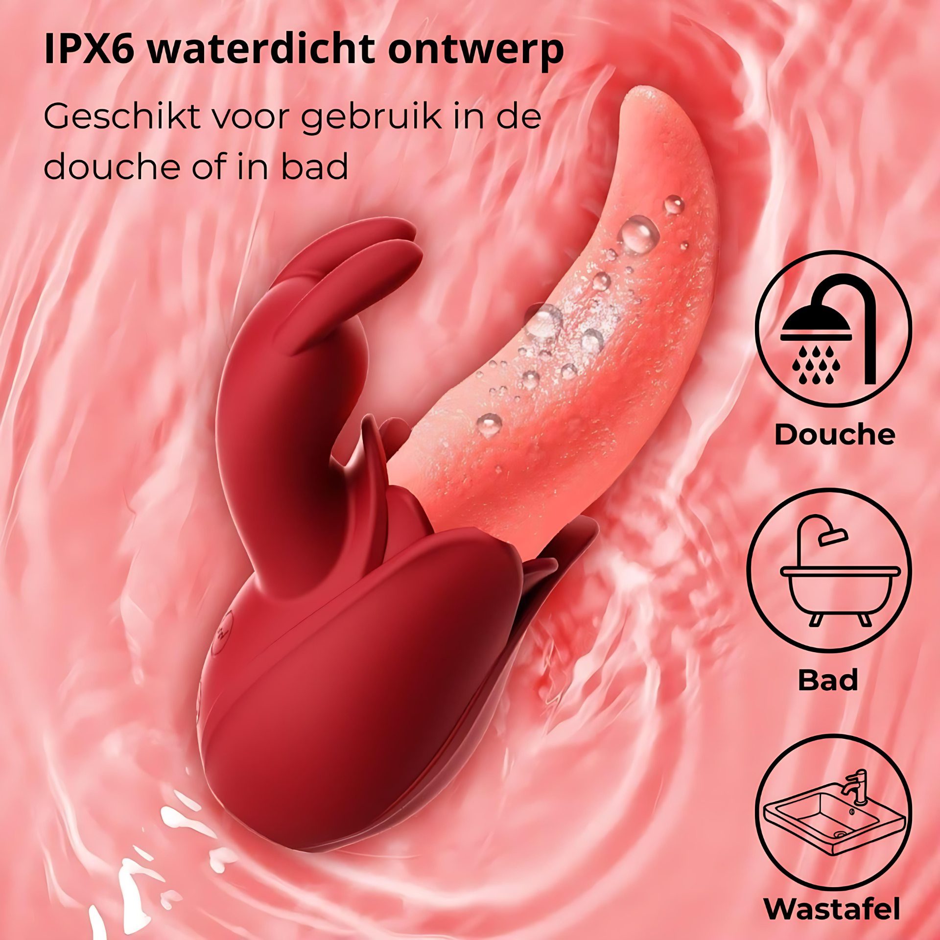 Ontdek een nieuwe dimensie van genot met deze unieke roosvormige vibrator met realistische tongbeweging en dubbele motor. Zowel de tong als de konijnenoren beschikken over 10 afzonderlijke vibratiestanden, waardoor je eindeloos kunt variëren in intensiteit en sensatie. Het zachte siliconen ontwerp zorgt voor ultiem comfort en veelzijdige stimulatie van elk gevoelig plekje van je lichaam.